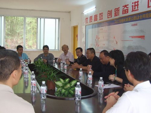 4月28日上午,广西壮族自治区交通厅党组成员、纪检组组长陈富芳、自治区交通厅团委书记覃昊、广西新生长交通集团党委副书记张友坐、总公司党委书记何洁文等领导莅临马梧路L8标、L9标施工现场检查指导事情并召开座谈会。