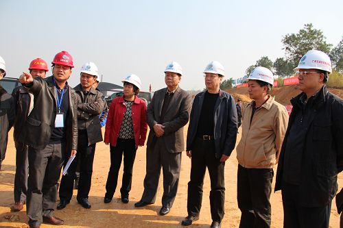 尹建国书记一行仔细检察了灌凤1标驻地“四化”建设情况,并高度评价项目具有浓厚企业文化的标准化驻地建设,表达了对灌凤“红色高速”全体参建人员的谢谢。随后,考察团一行来到灌凤1标工程起点现场,该处约700米规模内均为广西北流村与湖南下坝村历史争议地,种种关系错综庞大,尹建国书记对此高度重视,与桂林市常务副市长黄俊华、灌阳县副县长余桂兰深入交流意见,他强调桂林市、灌阳县政府应增强与湖南政府相应部分的对接洽谈,尽快制定解决争议的步伐步伐,确保灌凤高速公路建设顺利推进。