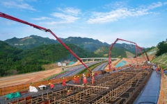 巴羌路三分部顺利完成巴色枢纽互通G匝道跨线桥底板及腹板混凝土浇筑