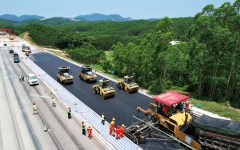 南湛路2-3分部AC-25C沥青下面层试验段顺利铺筑