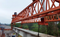 茶常1-2标石门下大桥首片梁顺利架设