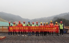 巴羌路二分部坡劳天桥顶板顺利浇筑完成